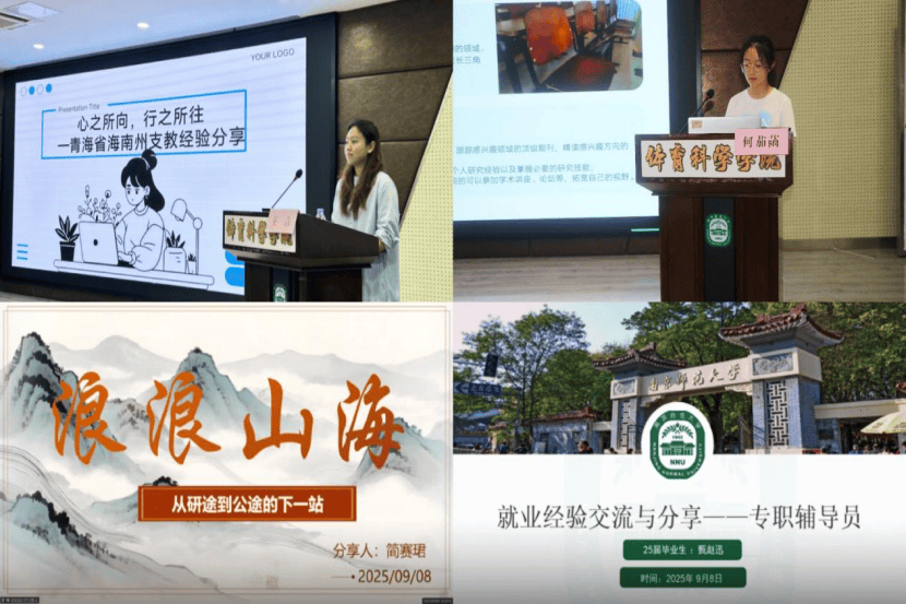 9月8日下午,体科院面向全体新生举办2025级研究生职业规划分享会。会上,院党委副书记黄小冬详细解读了体科院2025届就业数据,指出研究生就业呈现出地域广、方向多、竞争大的特点,鼓励新生早定目标,提前准备。何茄菡等五位2025届毕业生从申博、高校教师、选调生、中学教师、高校辅导员等角度分享了各自的求职经历、职业体会,助力新生了解行业要求,树立务实择业观。