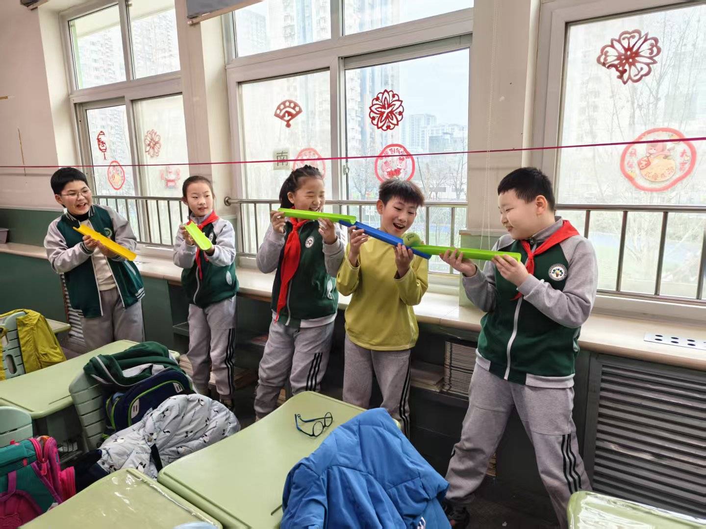 四年级的游戏,将协作与细致发挥到极致。小组队员用管道接力运送乒乓球,从起点平稳运送到终点,全程不能掉落,速度最快的小组获胜。