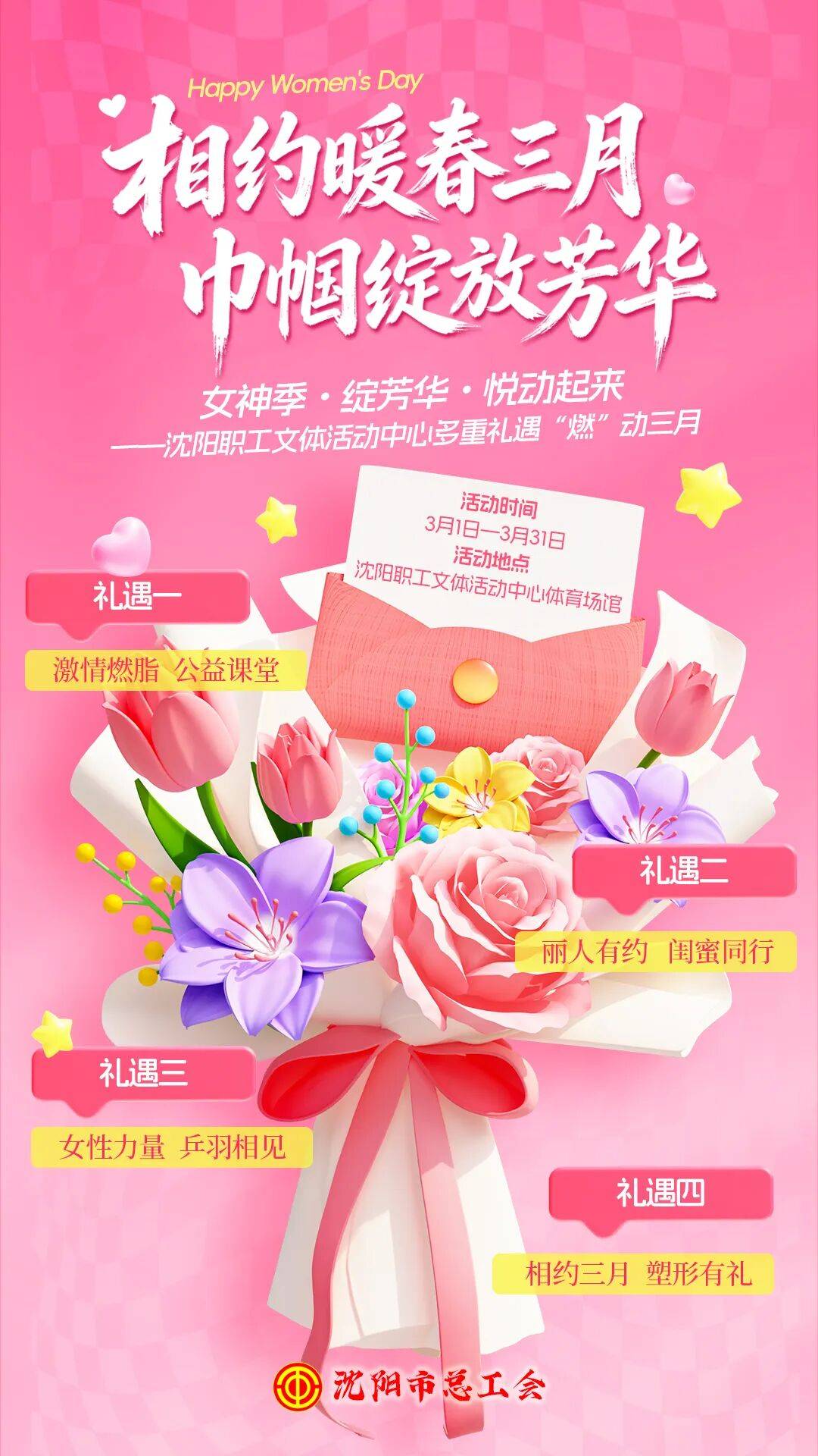 专属你的浪漫@沈城女职工:沈阳市工人文化宫“ 相约暖春体育比赛直播_足球_波胆_买球_篮电竞_在线投注三月 巾帼绽放芳华”活动来啦
